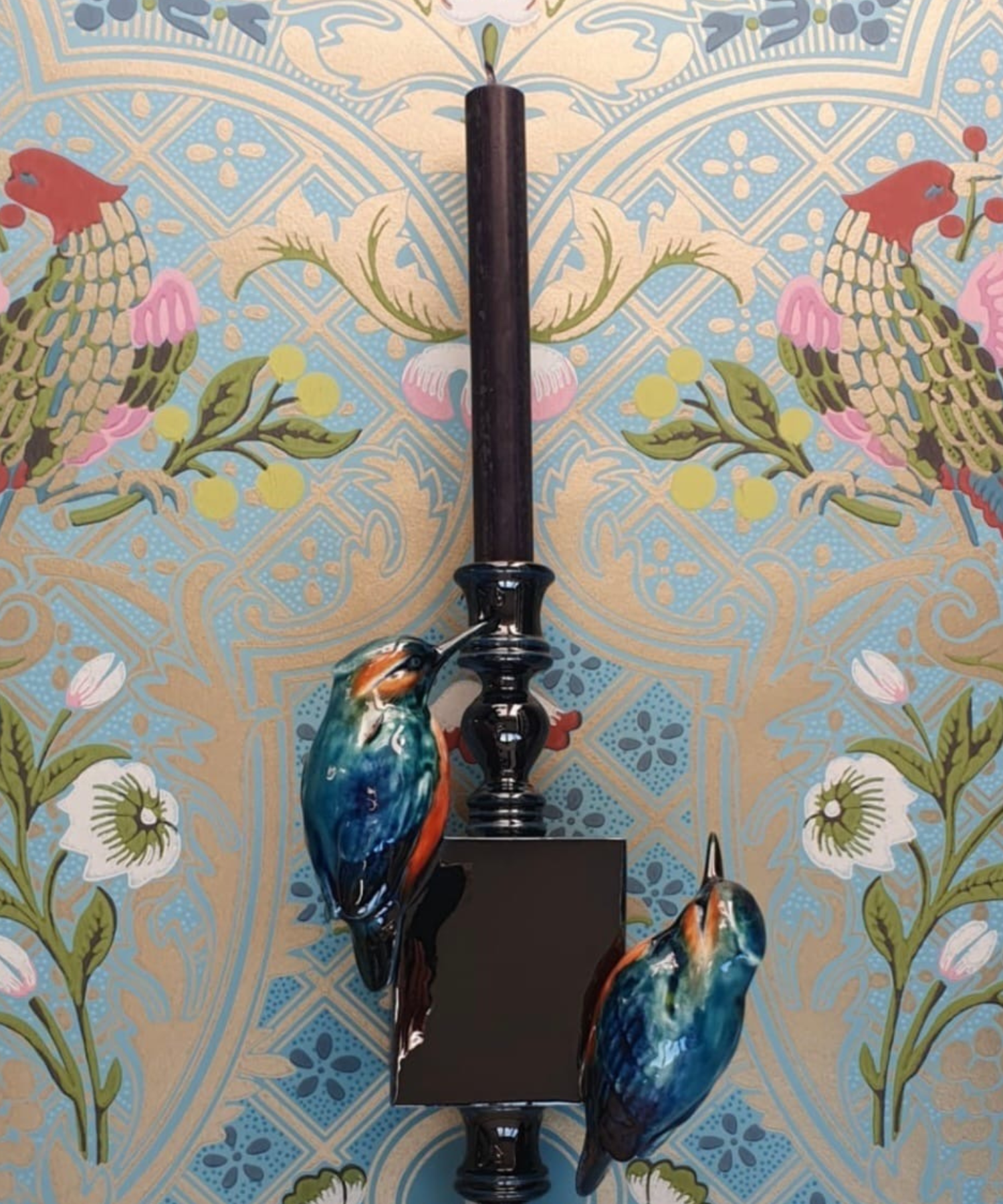 “Inspiration is drawn from opulent furnishings of the 18th & 19th Century. The rich jewel like colours and décor of these periods are her palette to create with. Ornamentation is a key feature of Ami’s work. Birds are plentiful!”